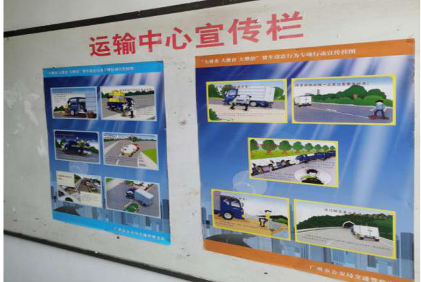 运输服务中心办公室外和工业中心负一停车场分别设置了两个安全宣传栏和一个安全宣传栏