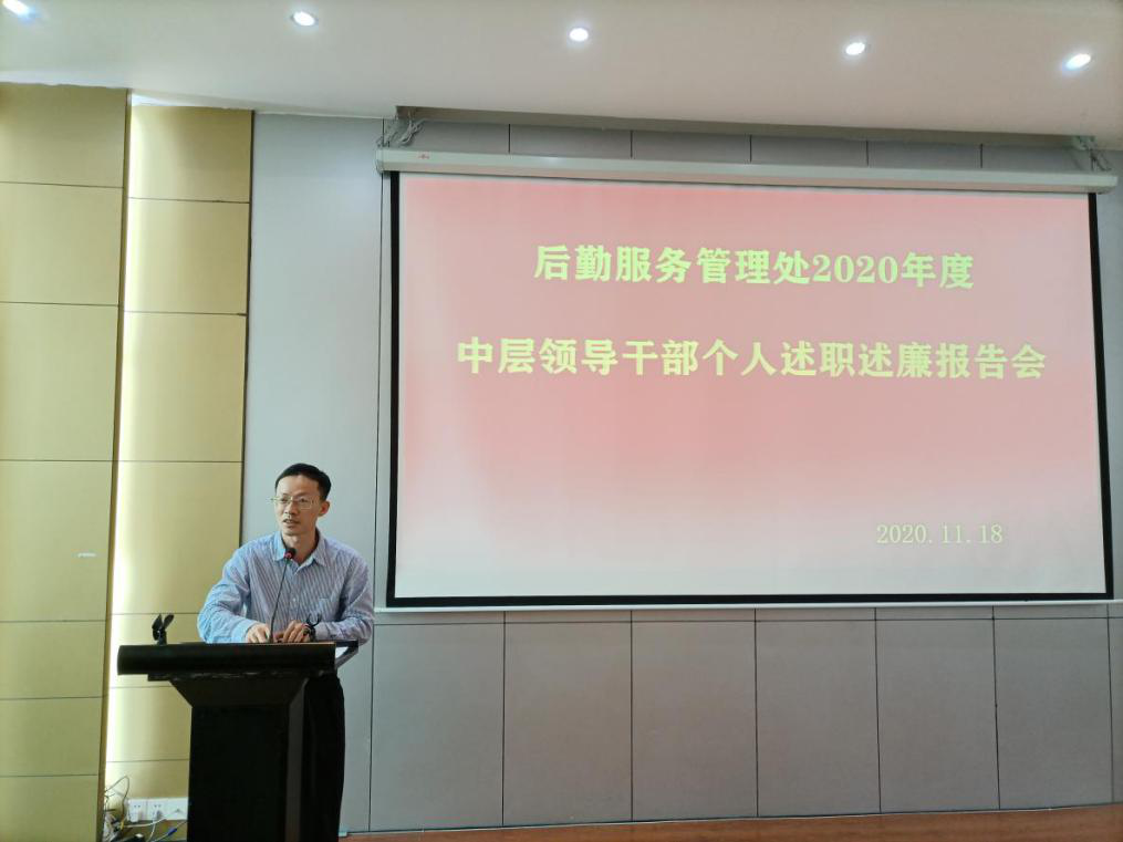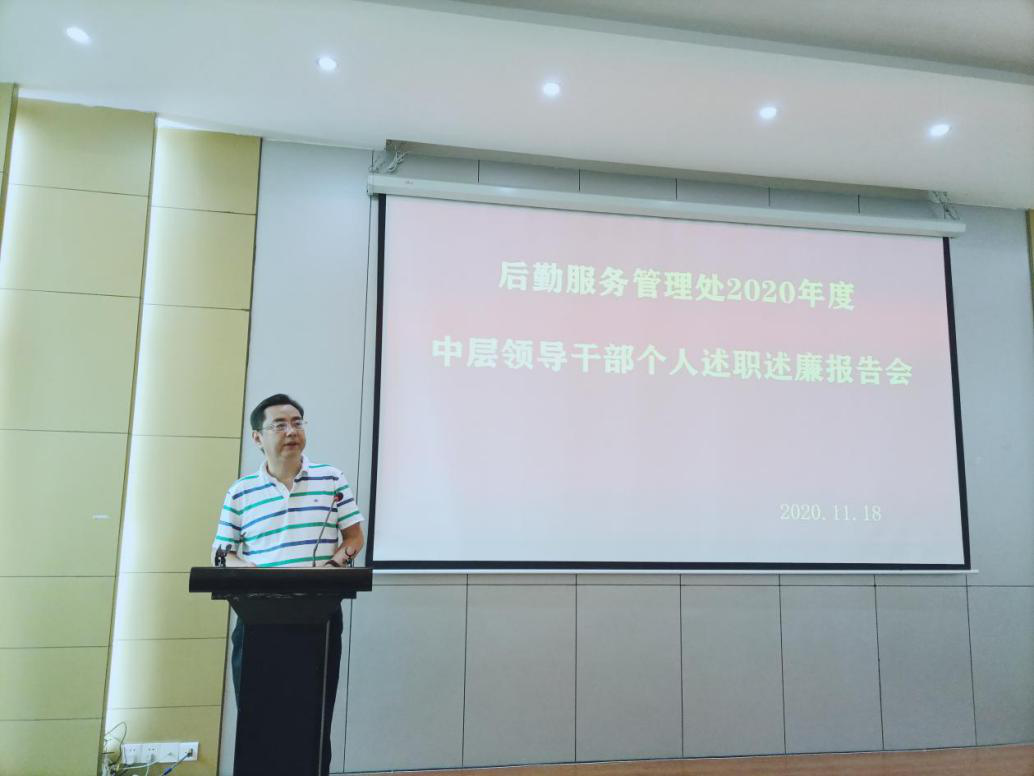 11月18日,后勤服务管理处在东校区第一教学楼209召开中层领导干部个人述职述廉报告会,本次会议由校法治办杨光洲主任主持,后勤处中层领导干部、各科室及中心实体主要负责人、职工代表参加了会议。