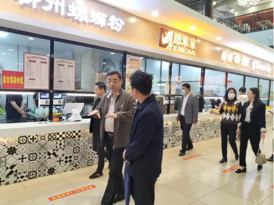 座谈会后,郑绍双一行实地参观了白云校区第一、第三食堂,对食堂窗口设置、环境卫生、菜品样式、功能布局给予了高度评价。