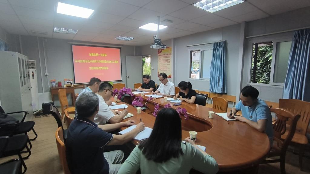 4月21日下午,后勤处第一党支部组织支部全体党员在东校区召开学习贯彻习近平新时代中国特色社会主义思想主题教育动员部署会,会议由支部书记黄锦文主持,学校副校长孙燕青以普通党员身份参会。