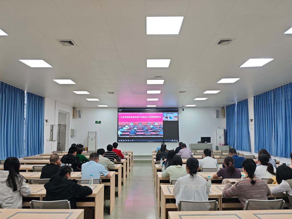 全体与会成员认真学习了全省校园餐教辅校服专项整治工作调度视频会精神。后勤处负责同志汇报了专项整治工作开展以来的工作情况,并对下一步工作做出安排。纪检监察室负责同志对我校“校园餐”专项整治工作提出建议。