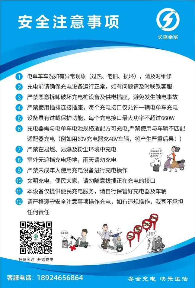注意:违规操作智能充电桩非常危险,请各位师生一定要认真仔细阅读下列提醒及安全注意事项,按规范要求操作充电设施对电动车进行充电。